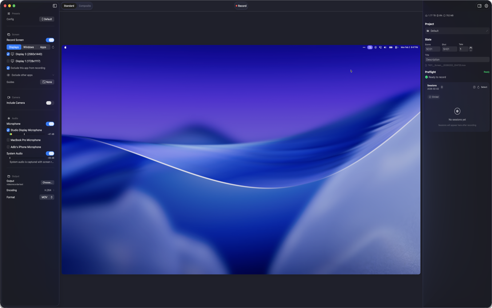 Record video for podcasts or archive your streams. ProRes for quality, system audio capture for everything your audience hears.